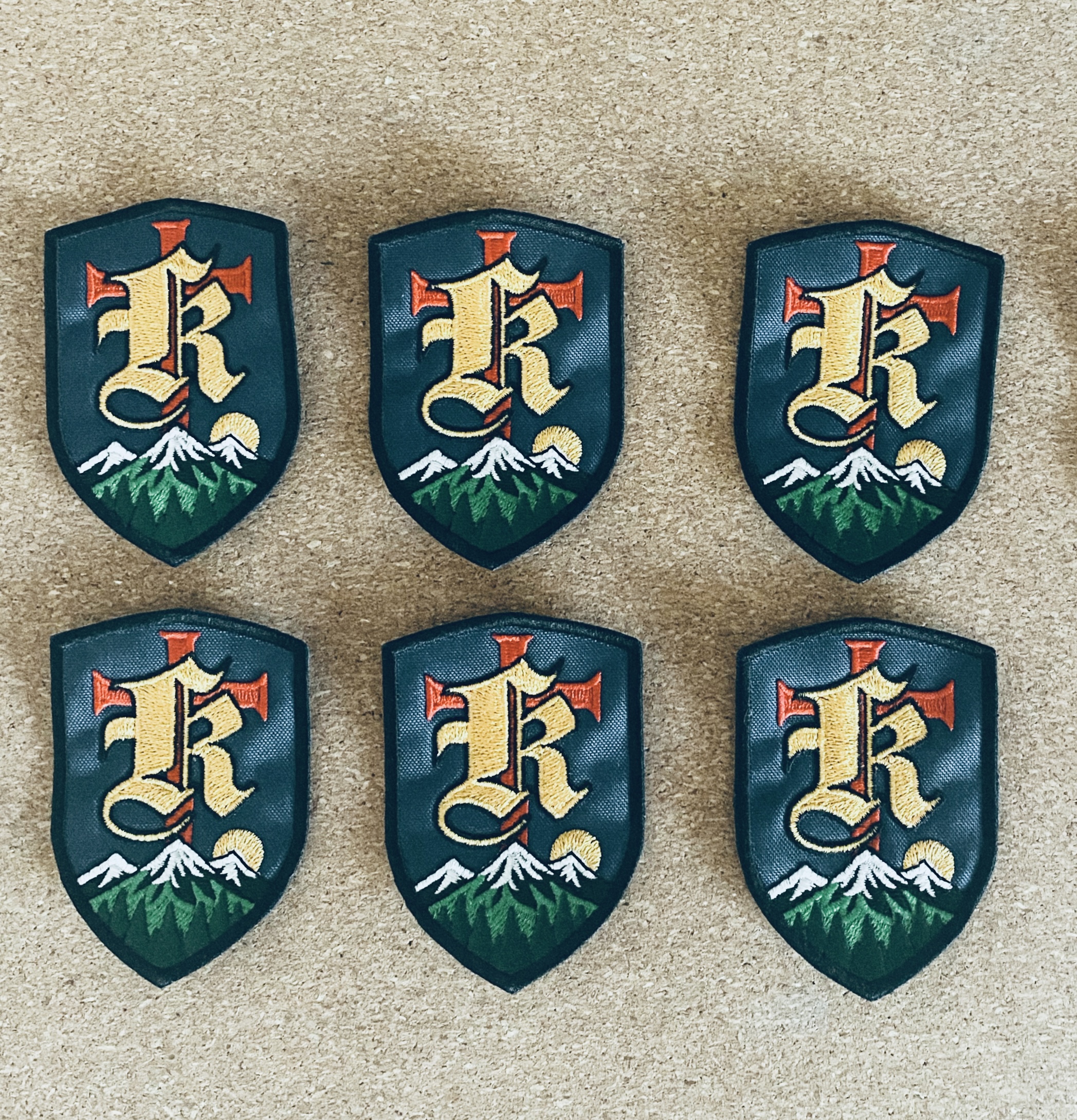 Parche bordado con velcro de alta resistencia trasero, con motivos ecologistas y de montaña y la letra – logotipo de la banda.